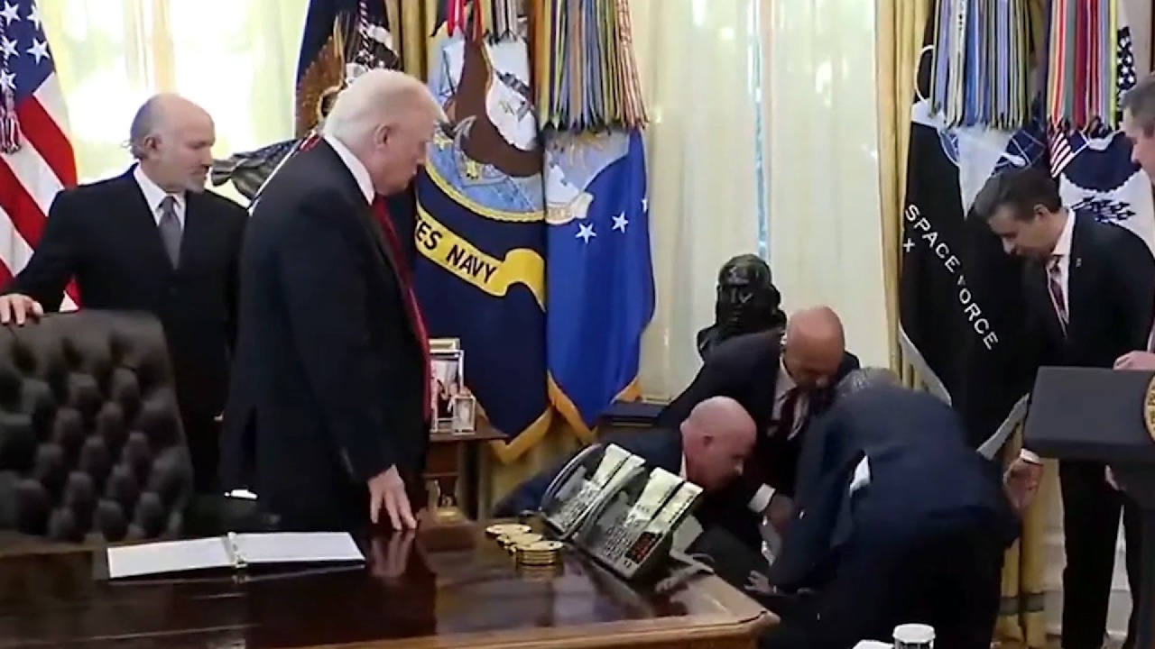 白宫新闻发言人卡随后发布声明称:“在椭圆形办公室发布会期间,一家公司的代表昏厥。白宫医疗小组迅速采取行动,该名男士现在情况良好。”