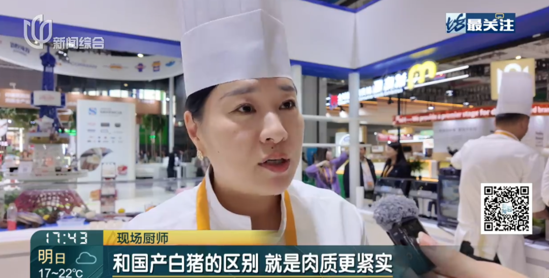 现场厨师陈颖介绍,这次带入进博会的西班牙进口黑猪脊骨,和国产白猪的区别是肉质更紧实, 在家可以炖汤,不会有太多血沫、比较鲜甜。
