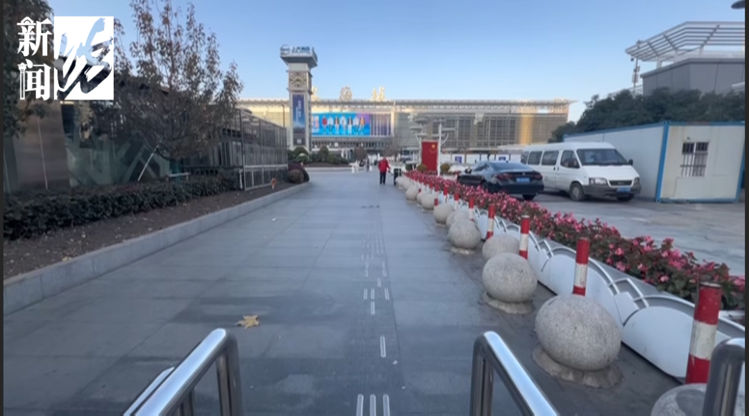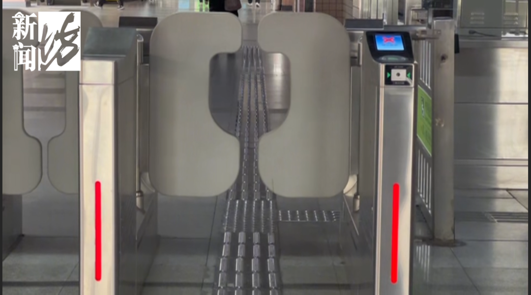 上海火车站南广场一处进出口的不锈钢盲道,无论是行进盲道还是提示盲道都存在盲条,盲点严重缺失的问题,影响旅客出行。👇