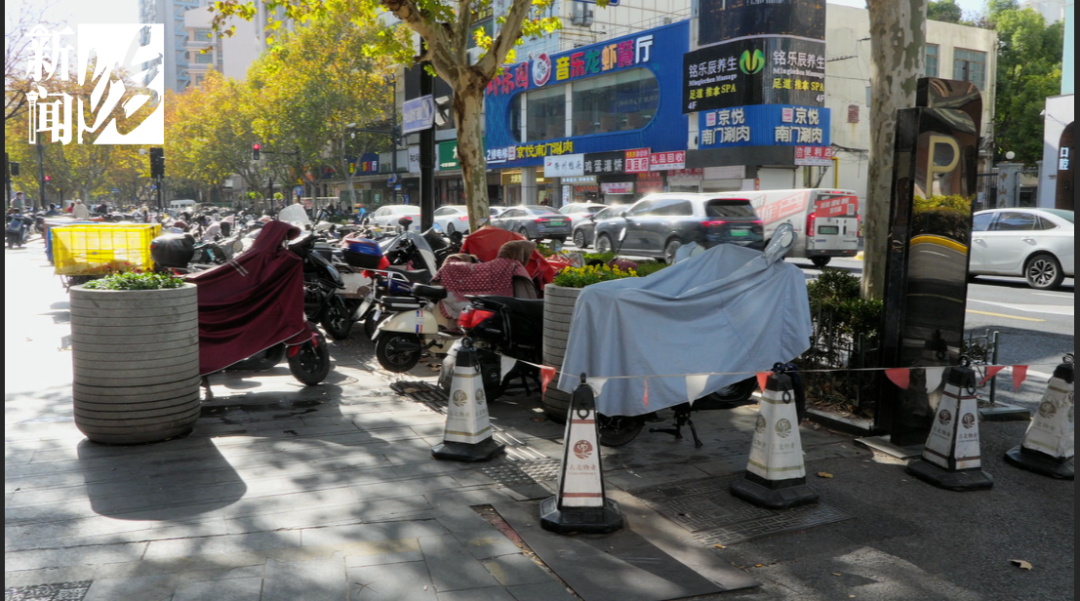 定西路宣化路上转角人行道上,也出现了不锈钢盲道,记者现场看到,宣化路该段人行道较窄,约1.2米宽,不锈钢盲道有严重缺失等问题。而在定西路这段,部分盲道被共享单车,非机动车占用。👇