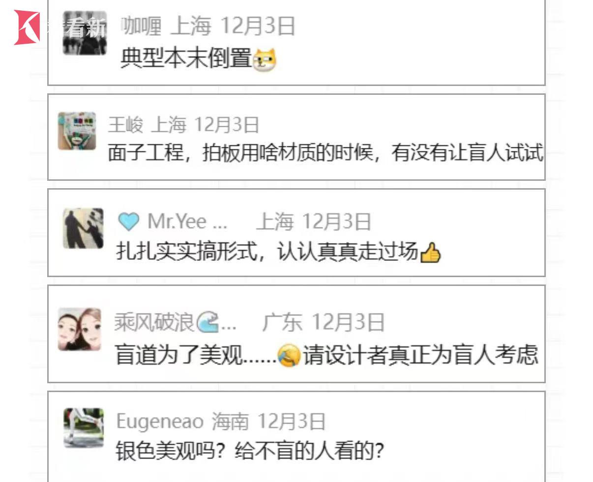 盲道铺设方表示,是从美观的角度考虑,当时选用了不锈钢材质盲道,成本也成倍增长。