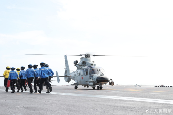 日前,海军福建舰航母编队组织海上多科目训练,这是福建舰入列后首次海上实兵训练。