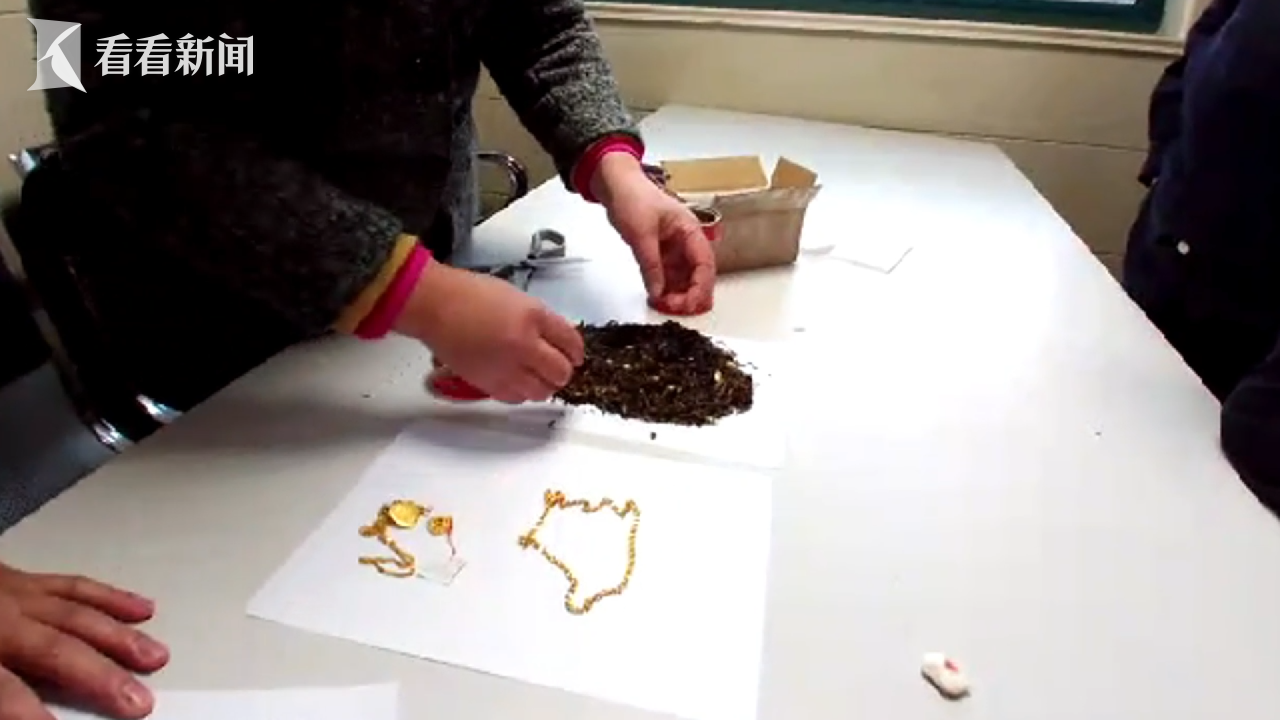 在民警耐心的反诈宣传下,何阿婆向民警展示了手机内的聊天信息,果不其然,何阿婆陷入了“邮寄黄金”骗局。而前往快递站的民警也传来消息,成功拦截马上就要装车发货的包裹,从里面取出藏有51克黄金首饰的茶叶罐。此刻,何阿婆终于恍然大悟,道出实情。