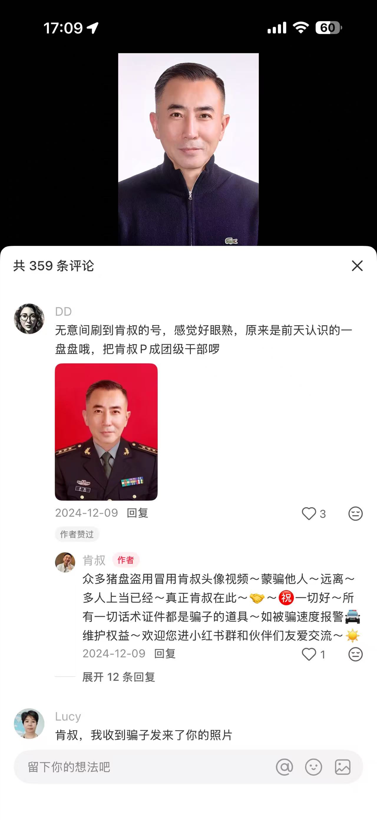 目前,其社交账号置顶发布了醒目的提醒帖,明确表示:不会私信联系他人,不会推荐任何投资理财,更不会私下见面、要求转账。在该帖评论区,已有多名粉丝留言称“中招”:有人收到的是“军官”身份;有人遇到的是“银行工作人员”;无一例外,最终都指向“投资理财”“共同赚钱”。