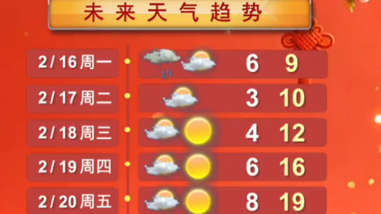 受辐射降温和海上平流共同影响,今天夜里到明天早晨,上海局部地区将有雾。而明天是春节假期第一天,新一股冷空气将抵沪。
