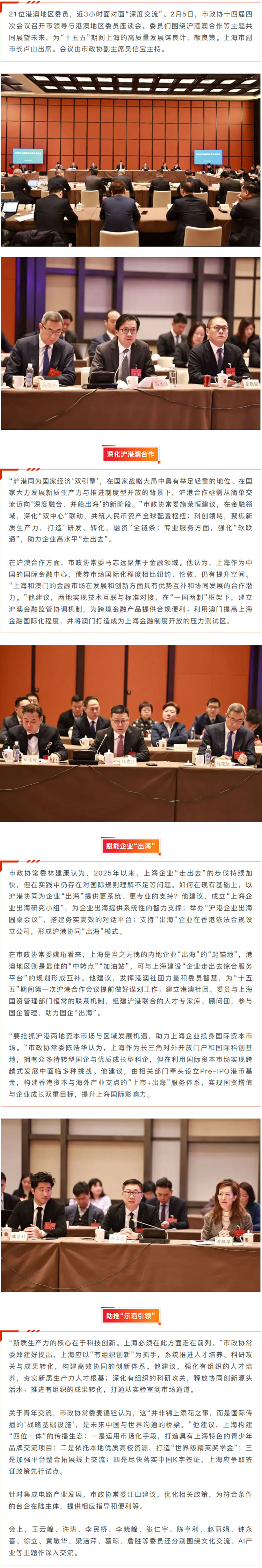 聚焦上海两会|市领导与市政协港澳地区委员座谈:发挥沪港澳协同优势,助力“十五五”高质量发展