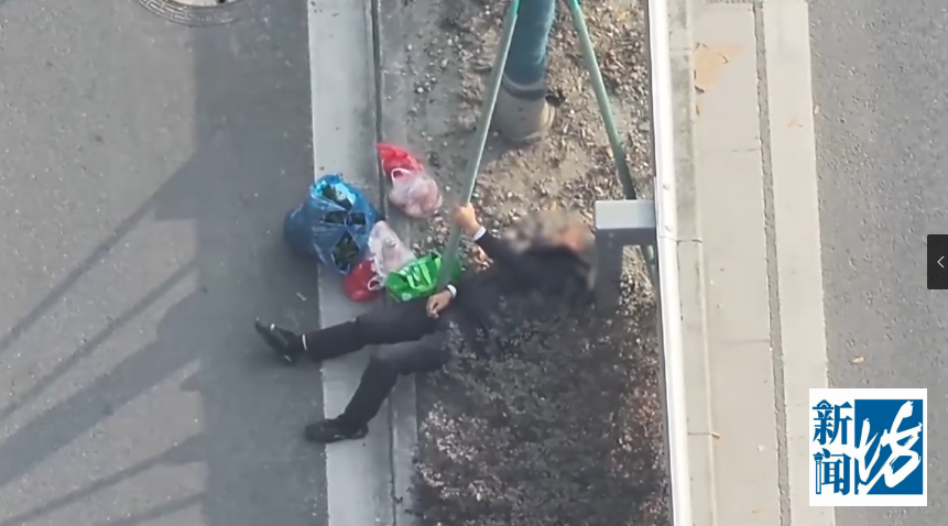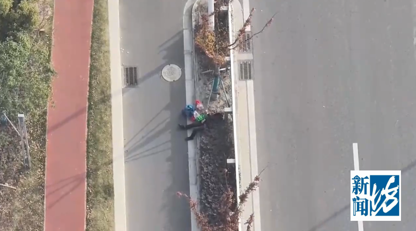 当天发现异常后,民警通过操控无人机镜头变焦拉近,看到老人倒在绿化带中,多次试图抓住栏杆起身未果。