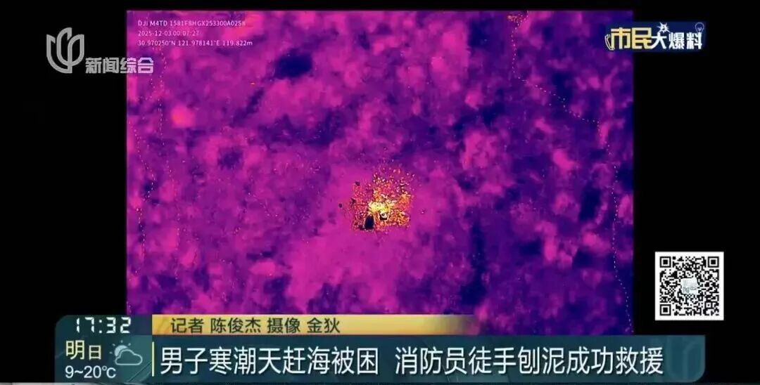 滴水湖滩涂附近赶海被困,深陷泥潭、无法离开。户外救援范围如此之大怎么找?所幸,无人机的高空视角和热成像锁定了位置,男子顺利获救。