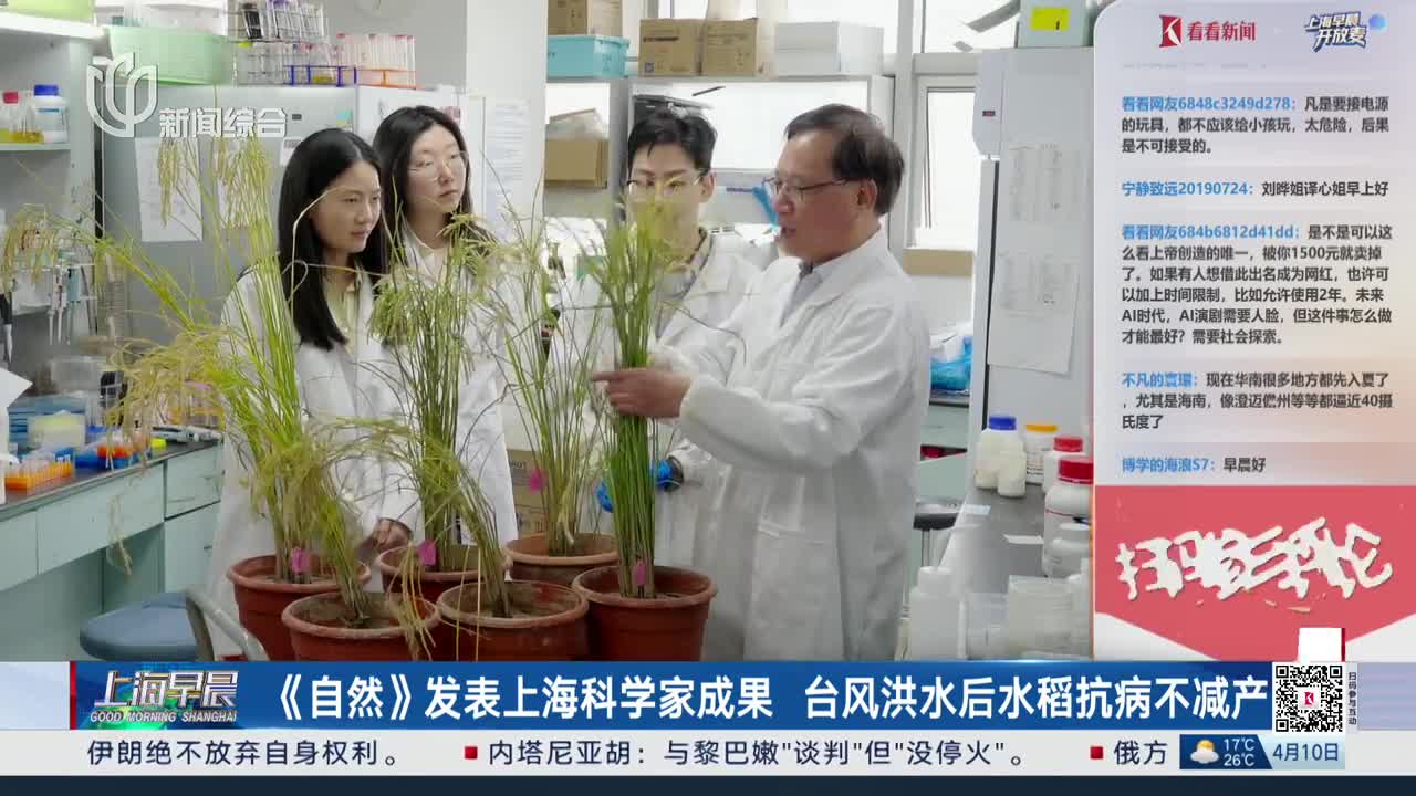 《自然》发表上海科学家成果 台风洪水后水稻抗病不减产