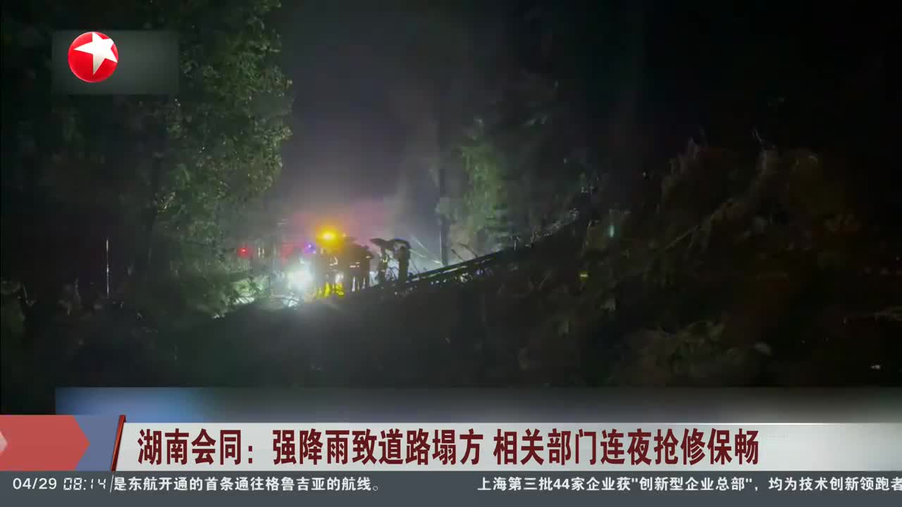 湖南会同:强降雨致道路塌方 相关部门连夜抢修保畅