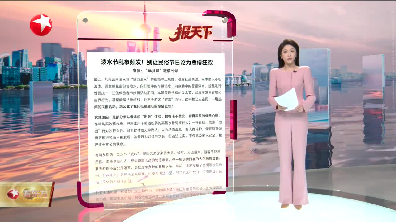 发布“文明泼水倡议书”,是当地管理部门每年的例行管理举措,相关部门每年也都会总结经验教训进行相应调整。今年4月9日,西双版纳就专门发布了文明泼水倡议书,其中明确列出了一长串不文明泼水行为清单:严禁使用高压水枪、水气球;不使用不干净、不卫生水源;不向行驶中的车辆强行泼水;不借泼水之名骚扰他人或实施低俗、恶意行为等等,条款不可谓不详细。