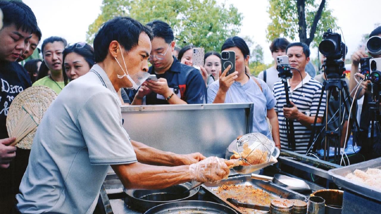 “鸡排哥”爆火后,游客蜂拥而来,女孩说原来只需要十几二十分钟就能吃到,现在要排队三四个小时。女孩开玩笑说:“袋子打开得不够好我会很紧张。”