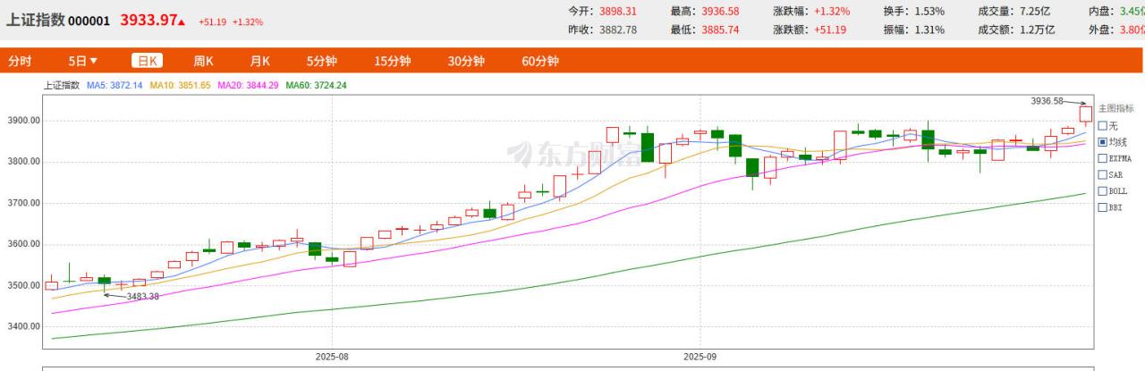 “十一”长假后的首个交易日,A股迎来了里程碑时刻。10月9日,A股三大指数高开高走,沪指突破3900点整数大关,刷新2015年8月以来新高。