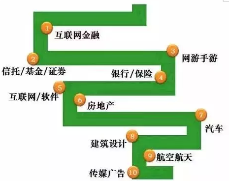 2、网游手游、银行/保险、互联网/软件分列3至5位;
