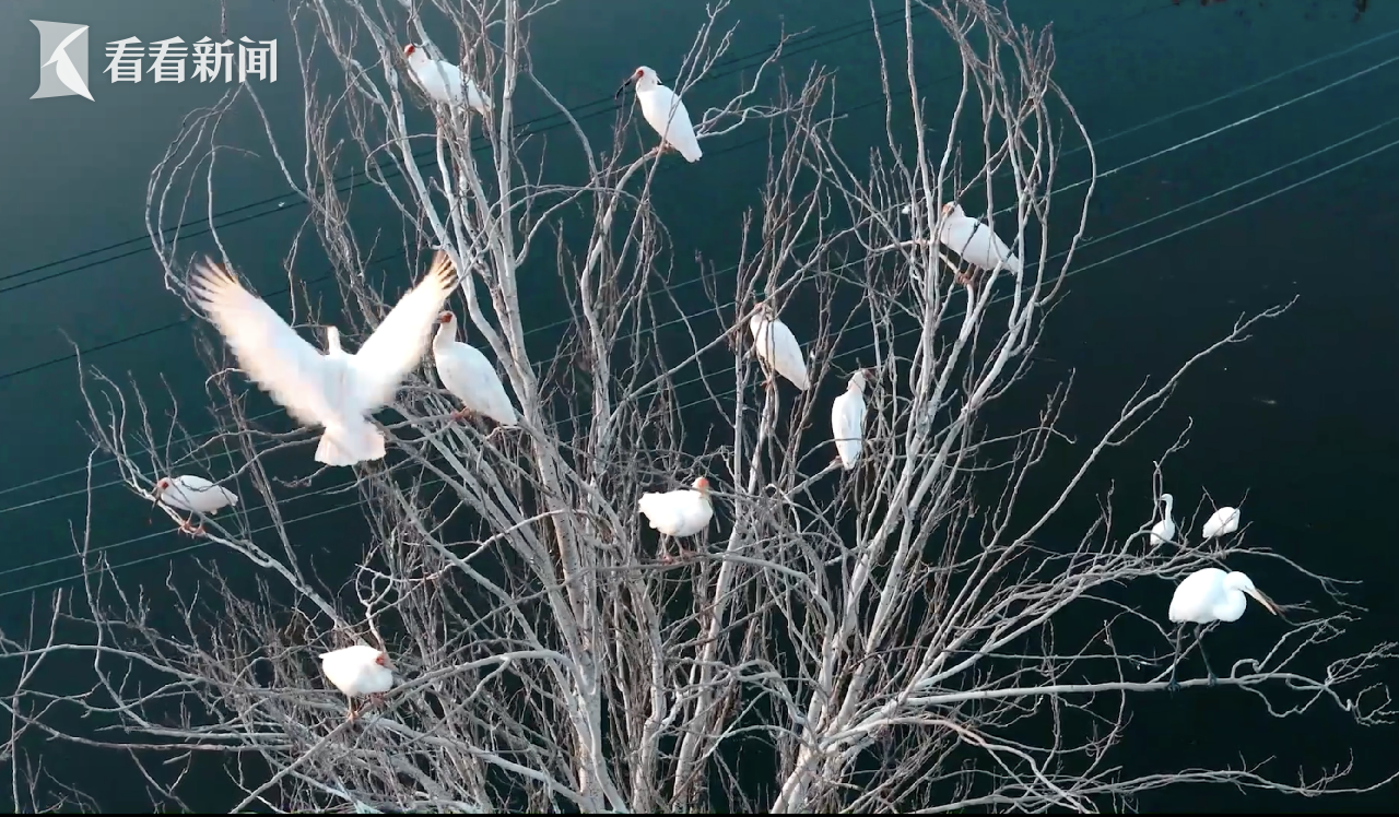 近日,在陕西眉县首善街道渭河沿岸的槐树林区域,一网友大规模观测到23只国家一级保护动物朱鹮,这在眉县朱鹮观测史上尚属首次。