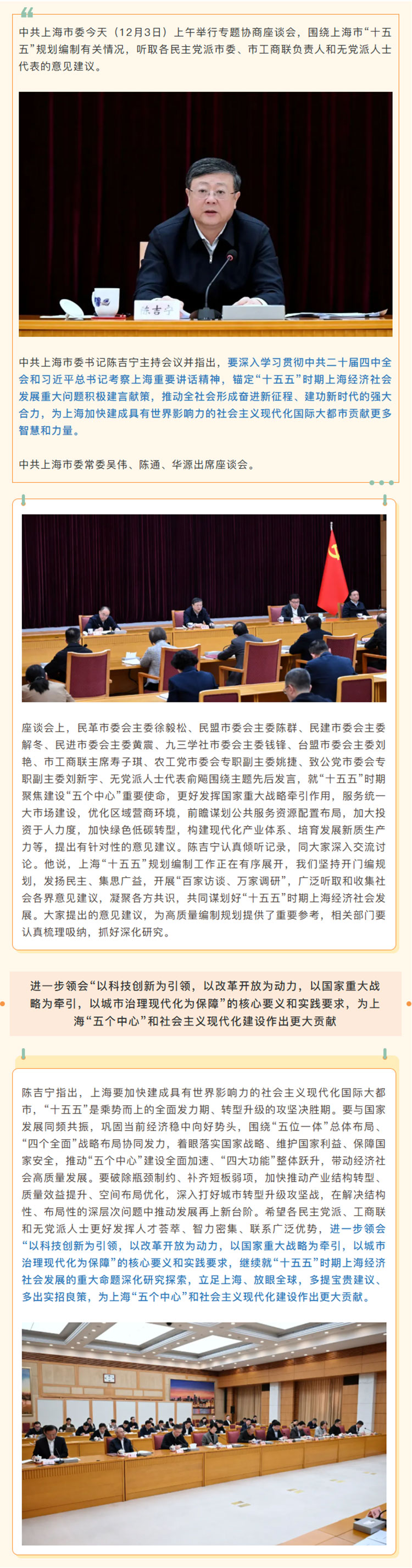 事关上海市“十五五”规划编制,陈吉宁与党外人士深入交流