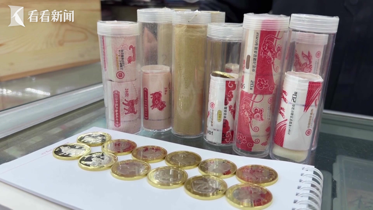而与贺岁币相比,20元一张的贺岁钞溢价幅度更高。卢工邮币卡市场经营户王寅指着两叠钞票解释说:“带数字‘4’的这10张,收购价35元一张;不带‘4’和‘7’的,我们可以收到45元一张。”