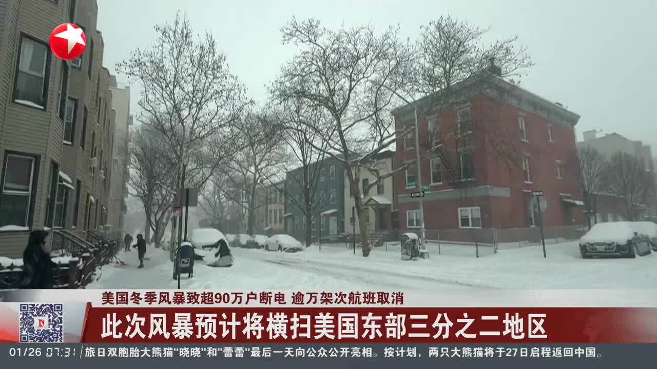 美国冬季风暴致超90万户断电 逾万架次航班取消 此次风暴预计将横扫美国东部三分之二地区