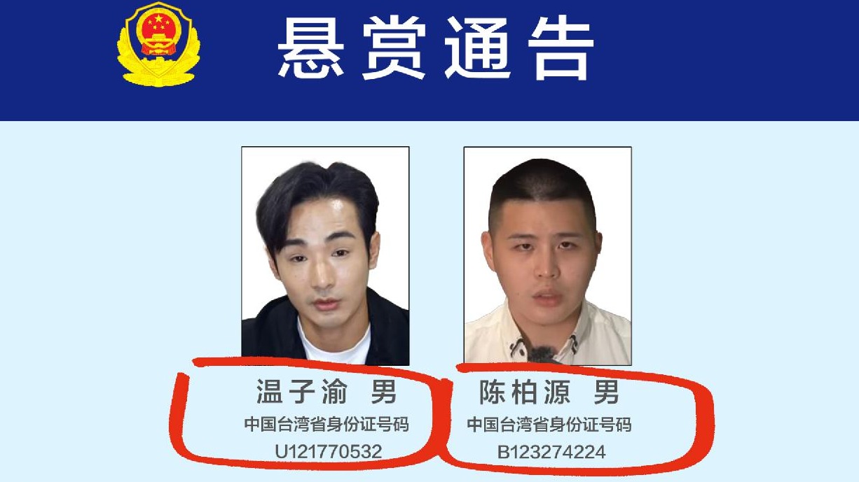 今天(11月13日),福建泉州公安发布悬赏通告,征集台湾网红温子渝(网名"八炯")、陈柏源(网名"闽南狼")违法犯罪线索。通告指出,二人长期在境外社交平台大量发布、传播"反中抗中"、煽动分裂国家言论,造成恶劣影响,其行为已触犯刑法第一百零三条之规定,涉嫌煽动分裂国家罪。