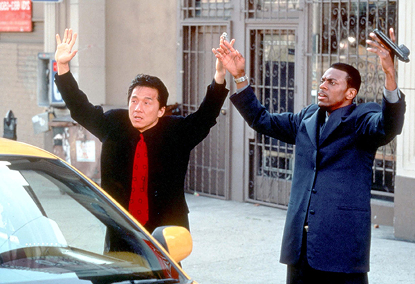 《尖峰时刻》系列电影讲述了洛杉矶警探詹姆斯·卡特(克里斯·塔克饰)和香港的李警官(成龙饰)这对搭档的故事。两人演绎了“水土不服”喜剧——“水土”便是对方的文化。当然,片中还有大量打斗场面,塔克奉上美式拳脚混战,成龙则大秀令人捧腹的武打招式。