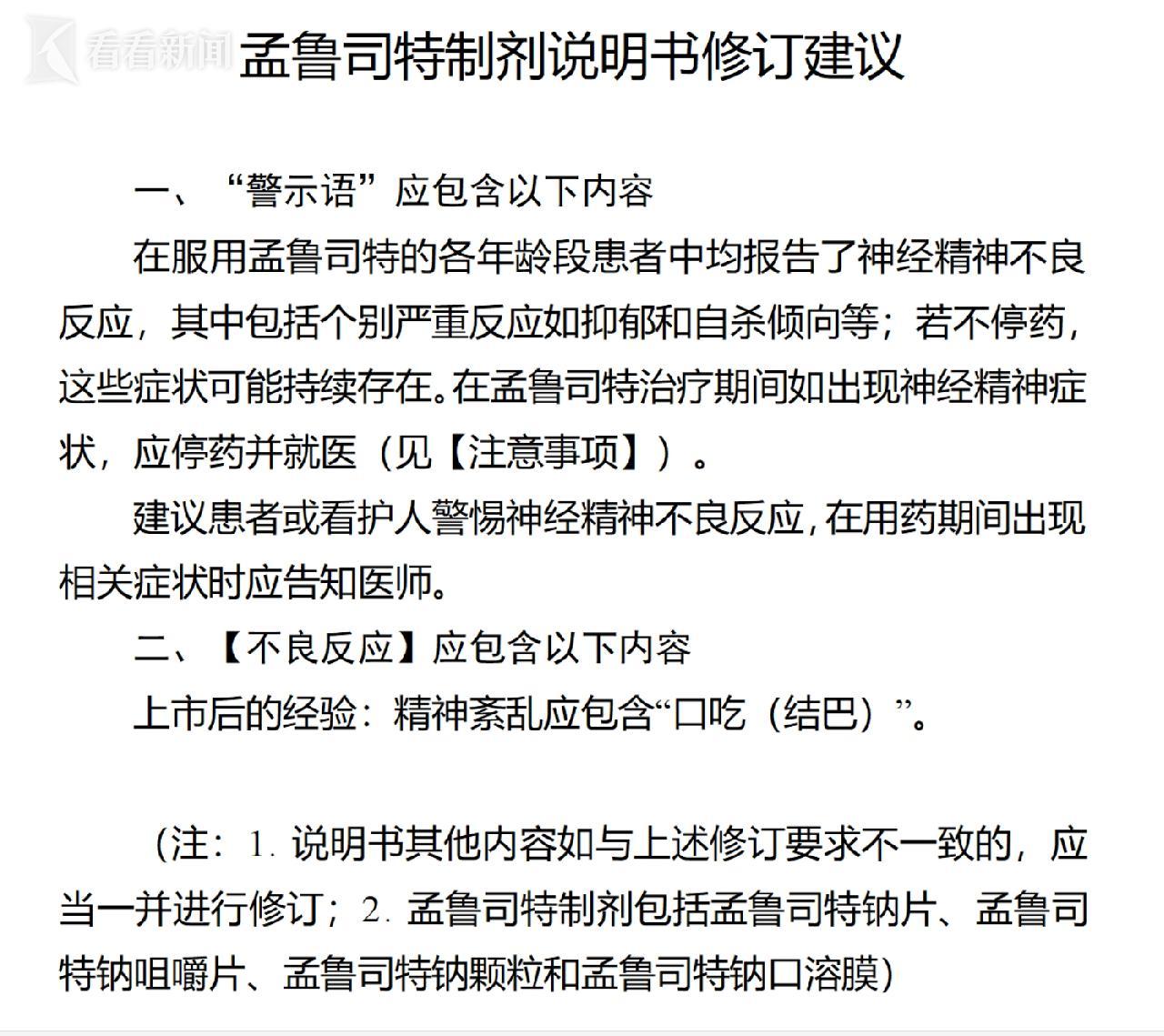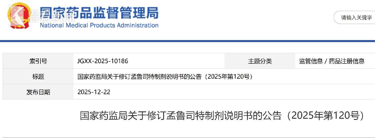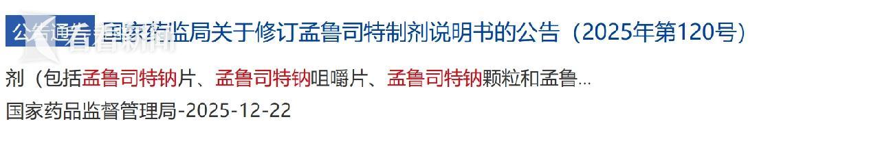 (图片:国家药监局2025年第120号公告及附件《孟鲁司特制剂说明书修订建议》)