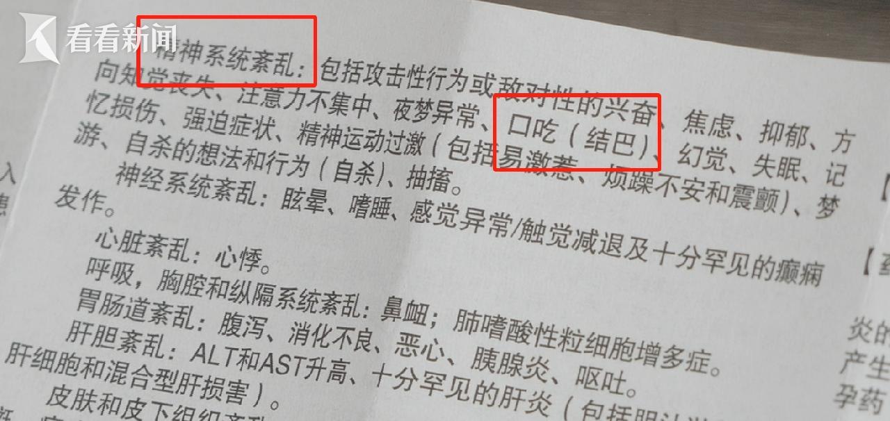 在“顺尔宁”2022版说明书里,记者查看发现,“上市后的经验”部分,已经在“精神紊乱”类别下标注了“口吃(结巴)”。