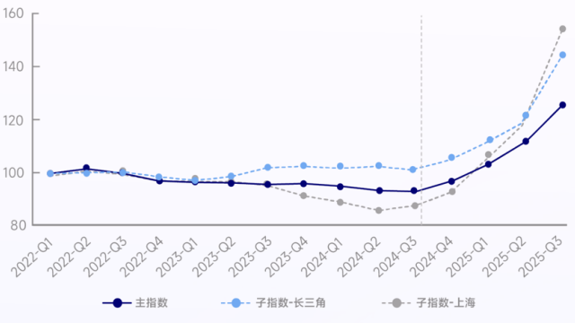 指数结果显示,以2022年一季度为基期,基点为100点,指数在2024年9月“并购六条”政策出台后快速攀升,至2025年三季度已达125.9点,同比增幅达35.5%,显示出并购市场活力显著增强。
