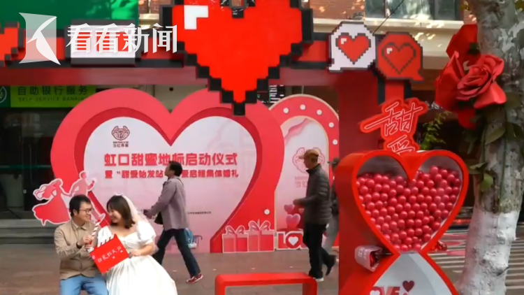 上周末,虹口启动“甜蜜地标”,“甜爱始发站”为爱启程集体婚礼在甜爱婚姻登记中心举行。虹口区还打造了全市首个爱情主题公交车站“甜爱始发站”。通过“婚姻登记+沿途站点”的动线串联,为新人们打造幸福新场景。