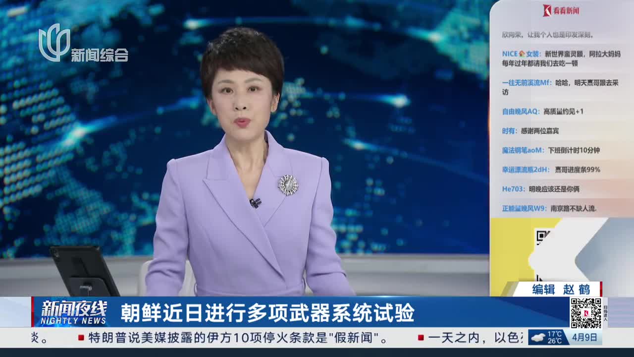 据朝中社4月9日报道,朝鲜国防科学院与导弹总局于4月6日至8日连续三天开展武器试射。朝方表示,此次密集试验旨在推进武器系统现代化、强化国防能力,是国防发展规划的重要举措。