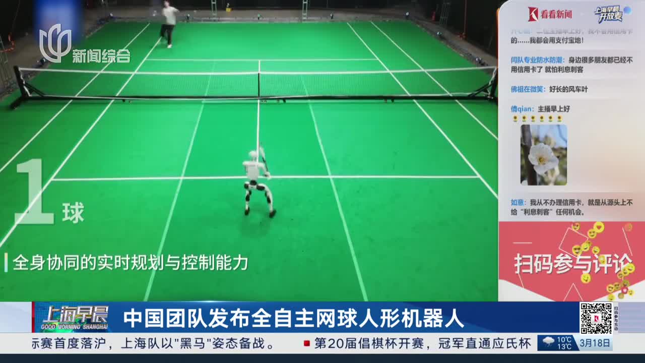 中国团队发布全自主网球人形机器人