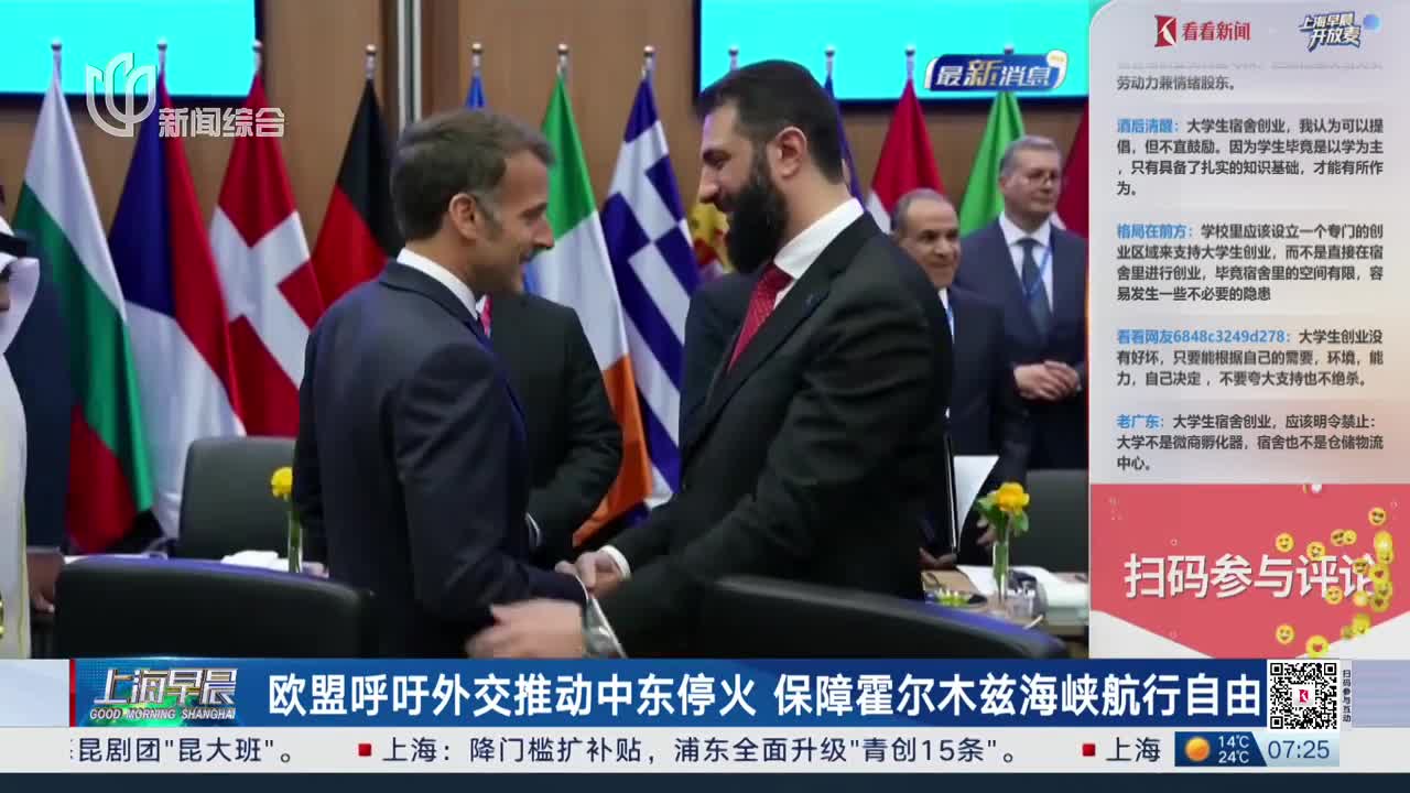 欧盟呼吁外交推动中东停火 保障霍尔木兹海峡航行自由