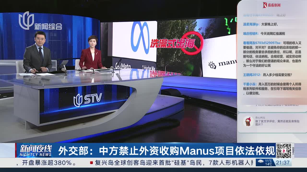 外交部:中方禁止外资收购Manus项目依法依规