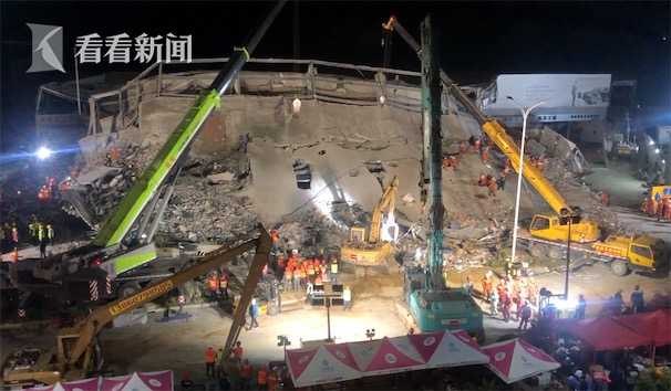 3月7日19时15分许,福建省泉州市鲤城区常泰街道南环路欣佳酒店发生楼体坍塌事故,截至3月8日18时,现场搜救出受困人员49人,其中10人死亡,仍有22人被埋废墟内。8日晚11点钟,记者再次来到事故现场,众多大型照明灯将现场照得如同白昼,事故现场人声鼎沸,钻探机声轰鸣,从福建各地集结而来的救援力量超过千人,消防、医疗等多部门参与的现场搜救工作正在紧张进行中。有附近居民在接受记者采访时,回忆了7日晚的惊魂一幕。