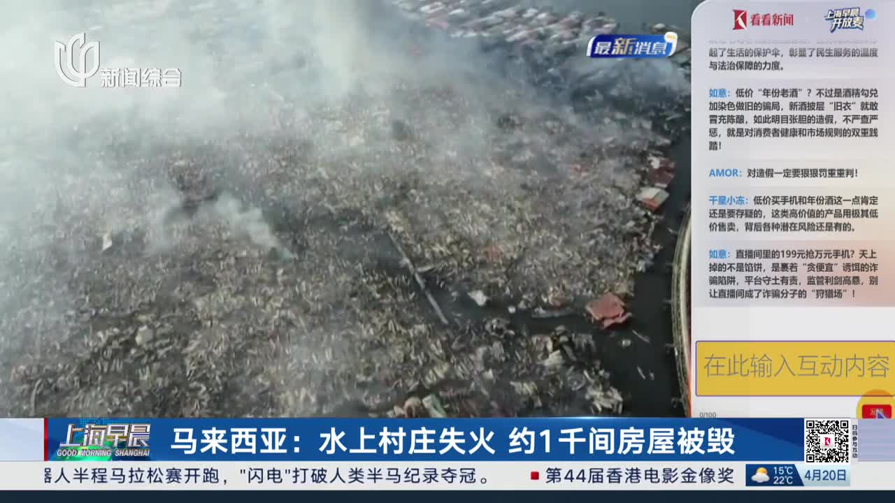 马来西亚沙巴州“水上村”失火 约1000间房屋被毁 近万人无家可归