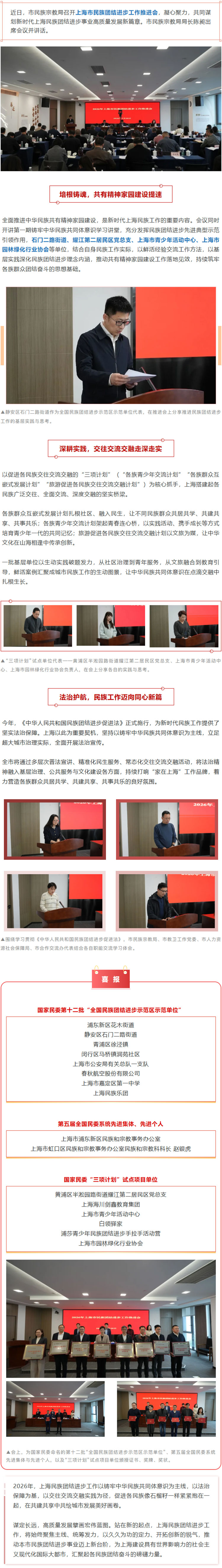 上海市民族团结进步工作推进会上,这些集体和个人获表彰→
