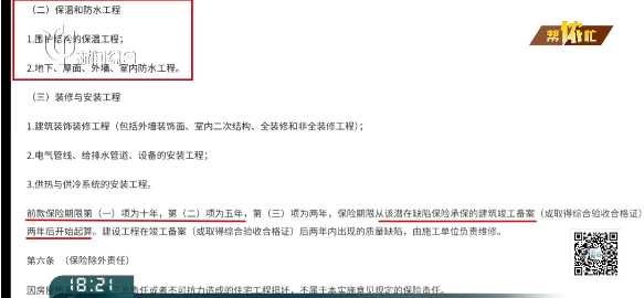 首先是上海市这边是有这个"质量潜在缺陷险" ,在开发之前就要购买的,首先它是保7年的,就是说保险公司会再(保证)维修两年,他不是说修完了就结束了,修完了的话它还会再延保5年。