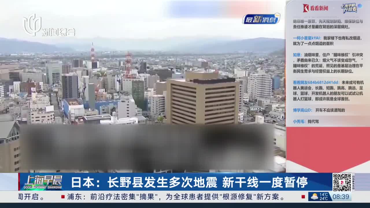 日本:长野县发生多次地震 新干线一度暂停