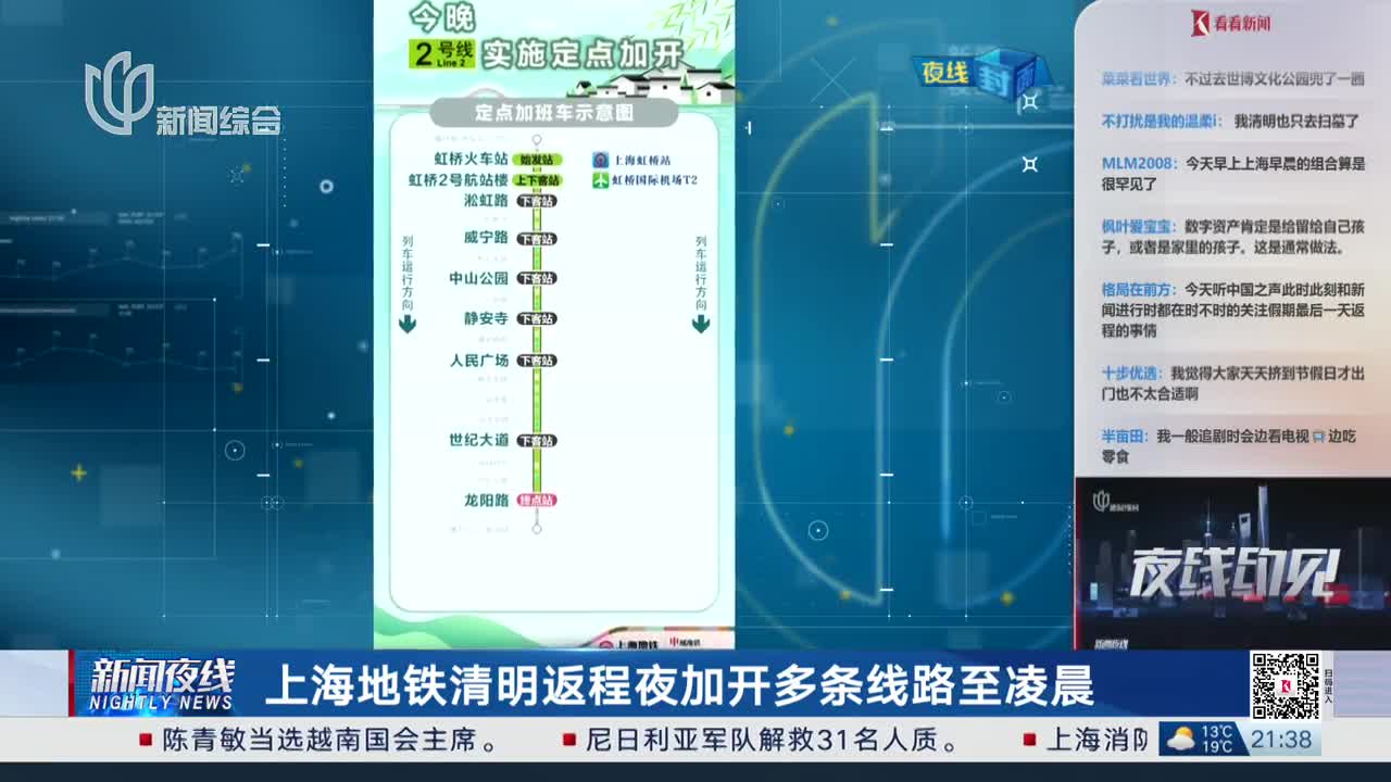 上海地铁清明返程夜加开多条线路至凌晨