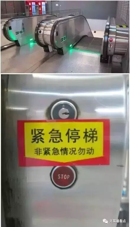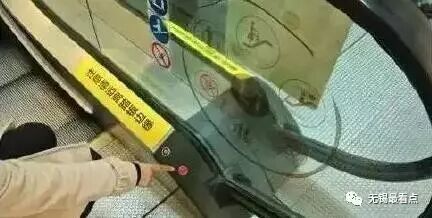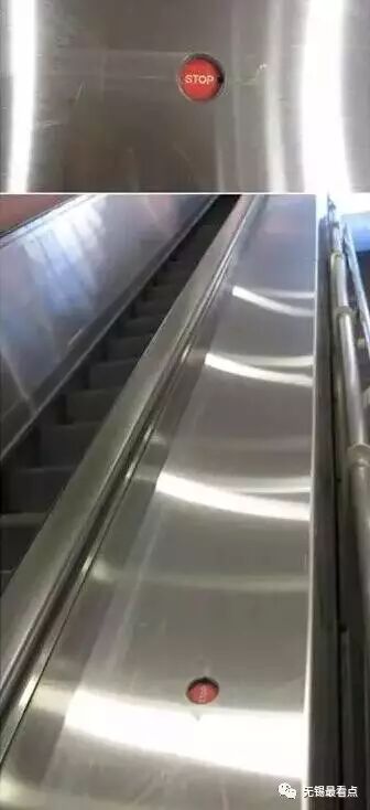 无论上下,扶梯的一侧下方都应有一个红色紧急停止按钮。危险关头,可果断将其按下!
