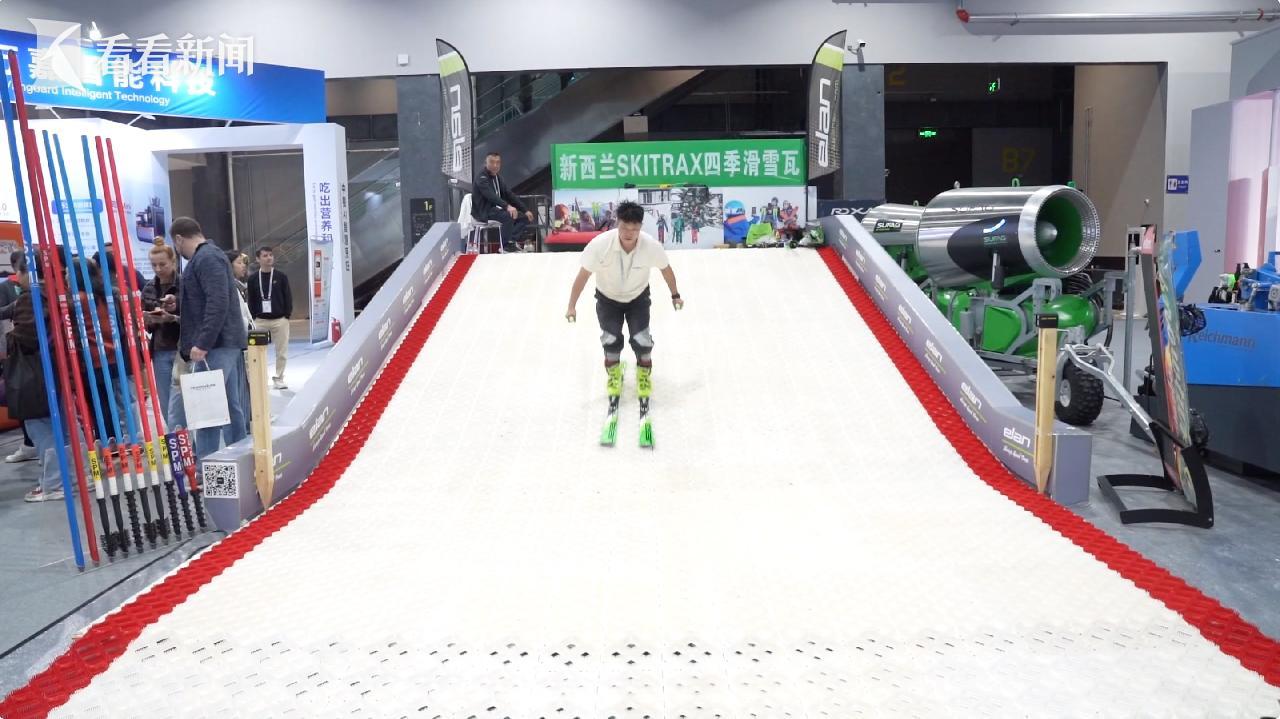 飘雪机、实景雪屋、冰球体验……展厅里,各种冰雪领域的前沿技术装备一一亮相,让观众尽情感受冰雪运动的魅力。现场搭建的一款室内“雪坡”采用新西兰四季滑雪瓦搭建而成,流畅的滑行和速度不仅可以媲美真雪,还能实现全年开展滑雪训练,目前已在国内多个训练基地应用。
