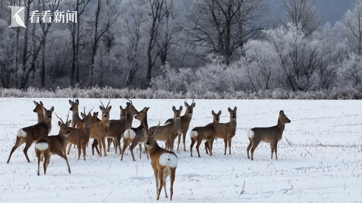 近日,在黑龙江省大兴安岭多布库尔保护区(试验区)内,摄影爱好者捕捉到野生狍子穿梭雾凇林间的生动画面。