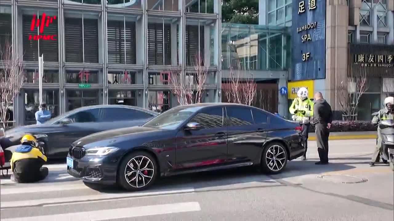 马当路徐家汇路路口突发车祸 外卖小哥与轿车相撞受伤