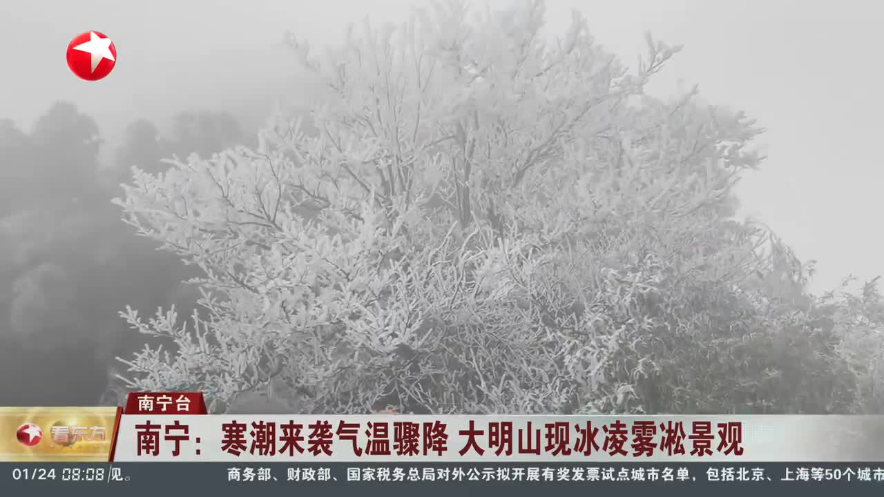 南宁:寒潮来袭气温骤降 大明山现冰凌雾凇景观