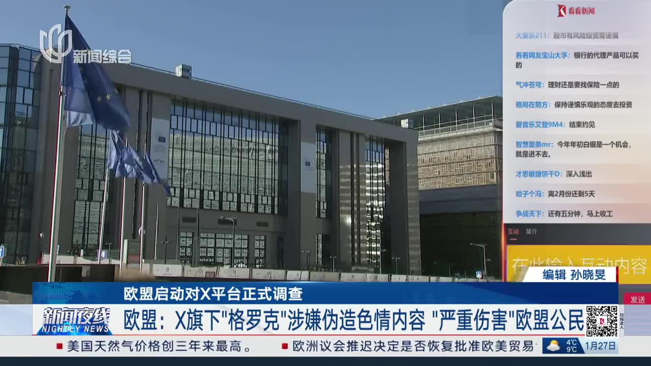 欧盟启动对X平台正式调查 欧盟:X旗下“格罗克”涉嫌伪造色情内容“严重伤害”欧盟公民