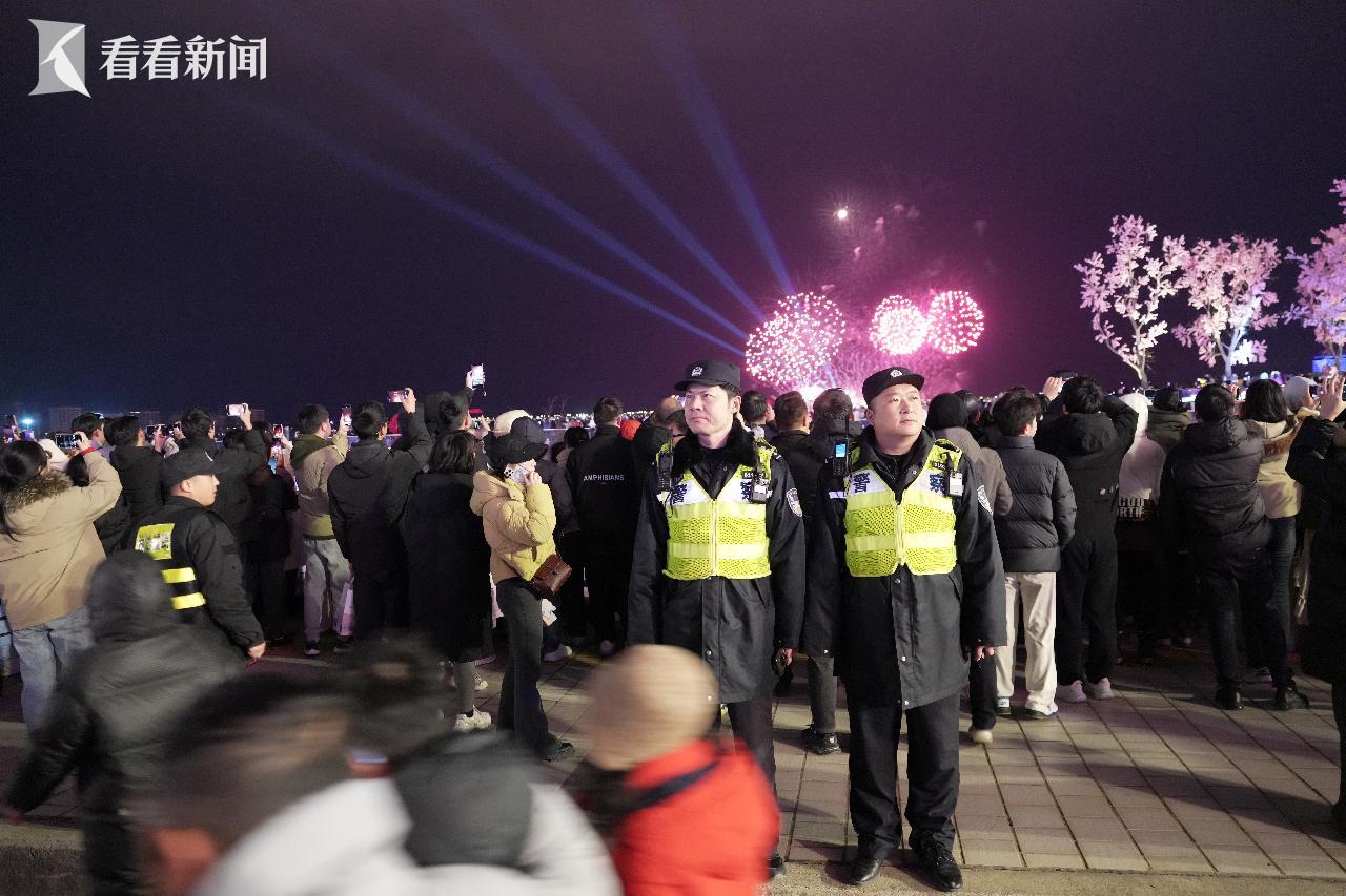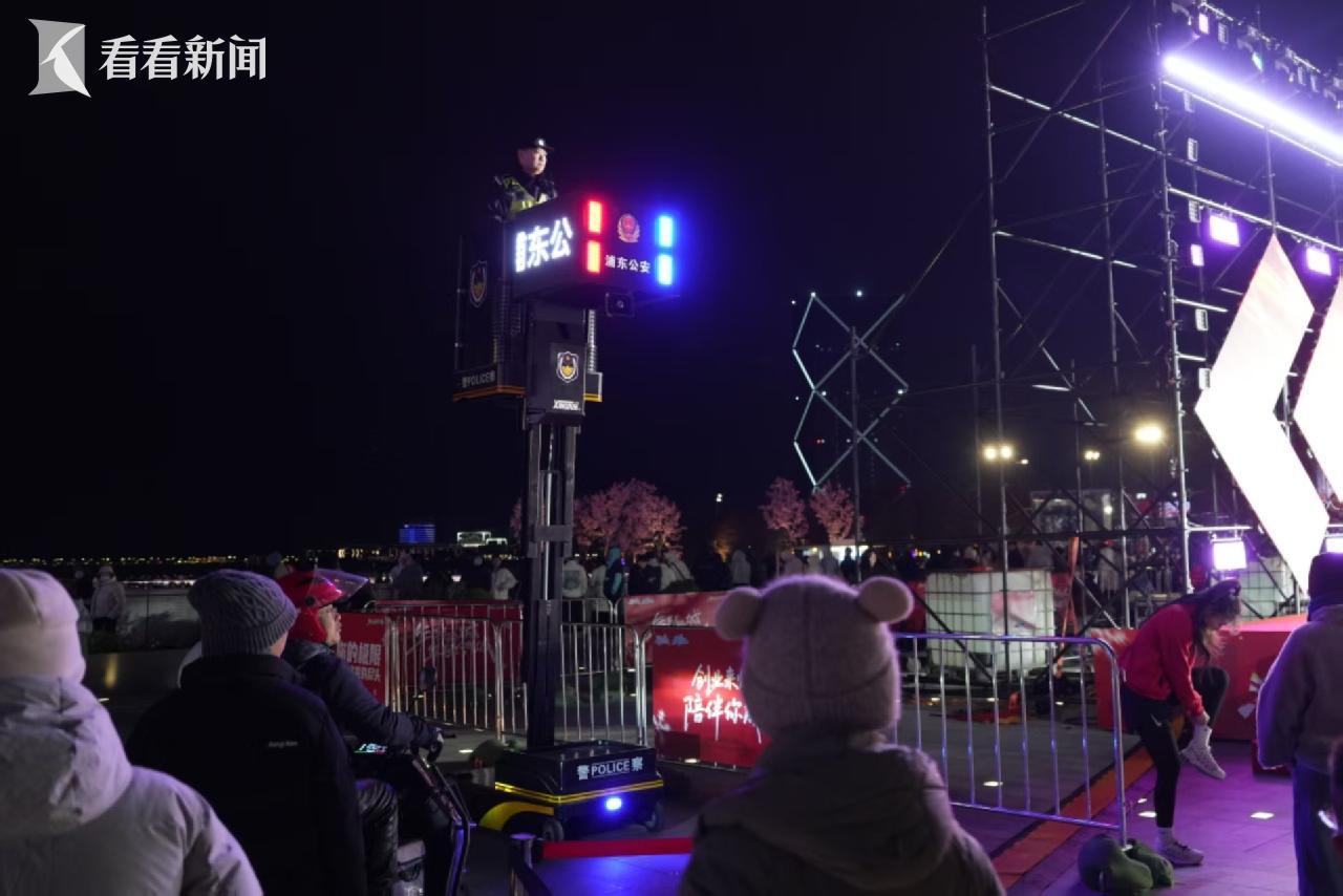 围绕当晚大客流的精准管控,临港新城派出所民警袁超介绍:“我们这次在滴水湖地铁站旁启用了警用升降车,相当于在高空设置了一个‘智慧眼睛’。通过它,指挥中心可以实时掌握各个观赏区域的人流密度和移动趋势。一旦发现局部区域人流过于密集,我们立刻就能通过对讲机,调度最近的地面警力前去引导和分流,实现‘高空监测、地面联动’的快速反应。这套方法让我们的安保工作从‘凭经验’转向‘看数据’,调度更科学,处置也更精准,确保了整场活动既安全又有序。”