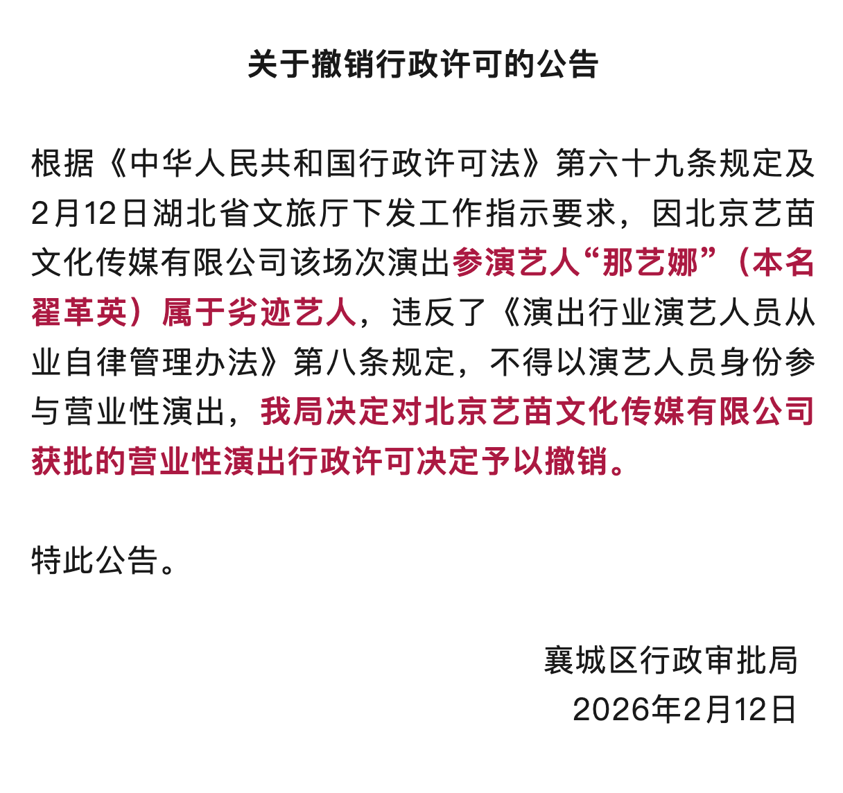 凭借一首《爱如火》走红的那艺娜,这次真的凉了!近日湖北省文旅厅正式认定那艺娜(本名翟革英)为劣迹艺人,演出全面叫停。