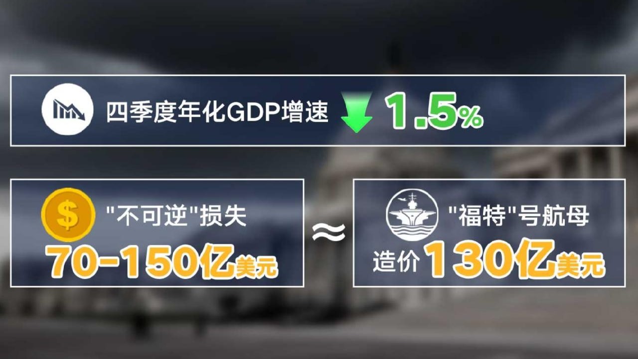美国国会预算办公室估计,"停摆"六周将使美国第四季度年化GDP增速下降1.5个百分点,其中,约70到150亿美元经济损失"不可逆",相当于蒸发了造一艘航母的钱。