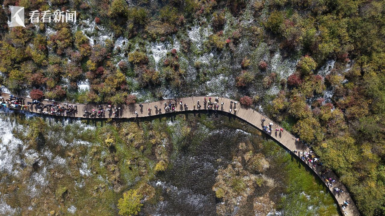 自十月下旬以来,九寨沟景区迎来彩林最佳观赏期,漫山红叶、黄枫与碧蓝海子、皑皑雪山交相辉映,构成一幅绝美秋日画卷。随着九绵高速全线通车,自驾游客量大幅攀升,景区门票持续售罄。