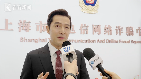 胡歌在现场讲述自己曾经遭遇的电信网络诈骗,并预祝市民群众新年快乐,守护好钱袋子。