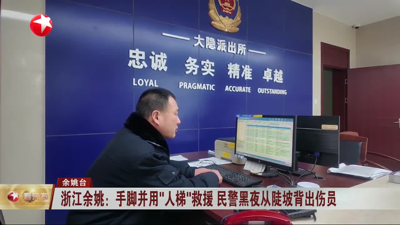 浙江余姚:手脚并用“人梯”救援 民警黑夜从陡坡背出伤员